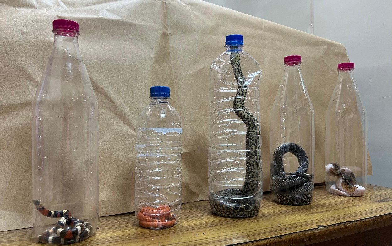 Speckled Kingsnake, Yellow Anaconda, Honduran Milk Snakes, Ball Python உள்ளிட்ட பல்வேறு இனங்களைச் சேர்ந்த 06 பாம்புகளை அவர் கொண்டு வந்துள்ளார்.