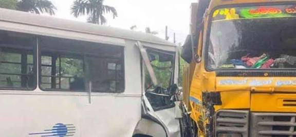 தனியார் நிறுவனம் ஒன்றின் ஊழியர்களை ஏற்றிச் சென்ற பேருந்து ஒன்று, லொறி ஒன்றுடன் மோதியதில் இந்த விபத்து இன்று முற்பகல் நேர்ந்துள்ளது. விபத்தில் காயமடைந்தவர்கள் இடங்கொட மற்றும் இரத்தினபுரி வைத்தியசாலையில் சிகிச்சைகளுக்காக அனுமதிக்கப்பட்டுள்ளனர்.