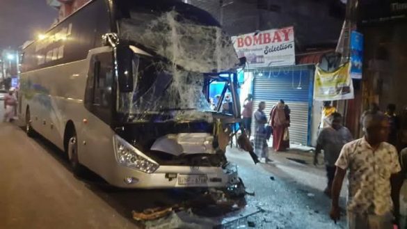 காத்தான்குடி பொலிஸ் பிரிவில் உள்ள பகுதியில் கொழும்பில் இருந்து அக்கரைப்பற்று நோக்கி சென்ற அதிசொகுசு பஸ் இன்று (21) அதிகாலை காத்தான்குடி பிரதான வீதியில் லொறி மற்றும் முச்சக்கர வண்டியுடன் மோதி விபத்துக்குள்ளாகியுள்ளது.