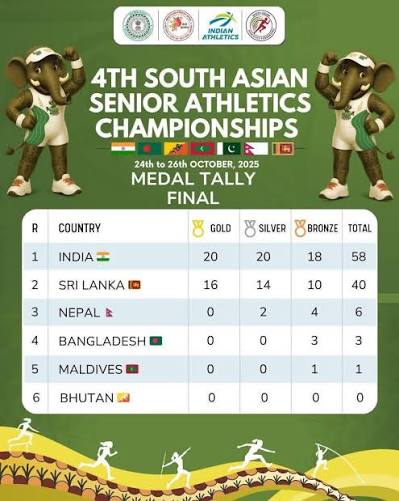 இந்தியாவின் ராஞ்சியில் நேற்று (26) முடிவடைந்த தெற்காசிய சிரேஸ்ட தடகள செம்பியன்ஷிப் போட்டியில் இலங்கை இரண்டாம் இடத்தைப் பிடித்துள்ளது.