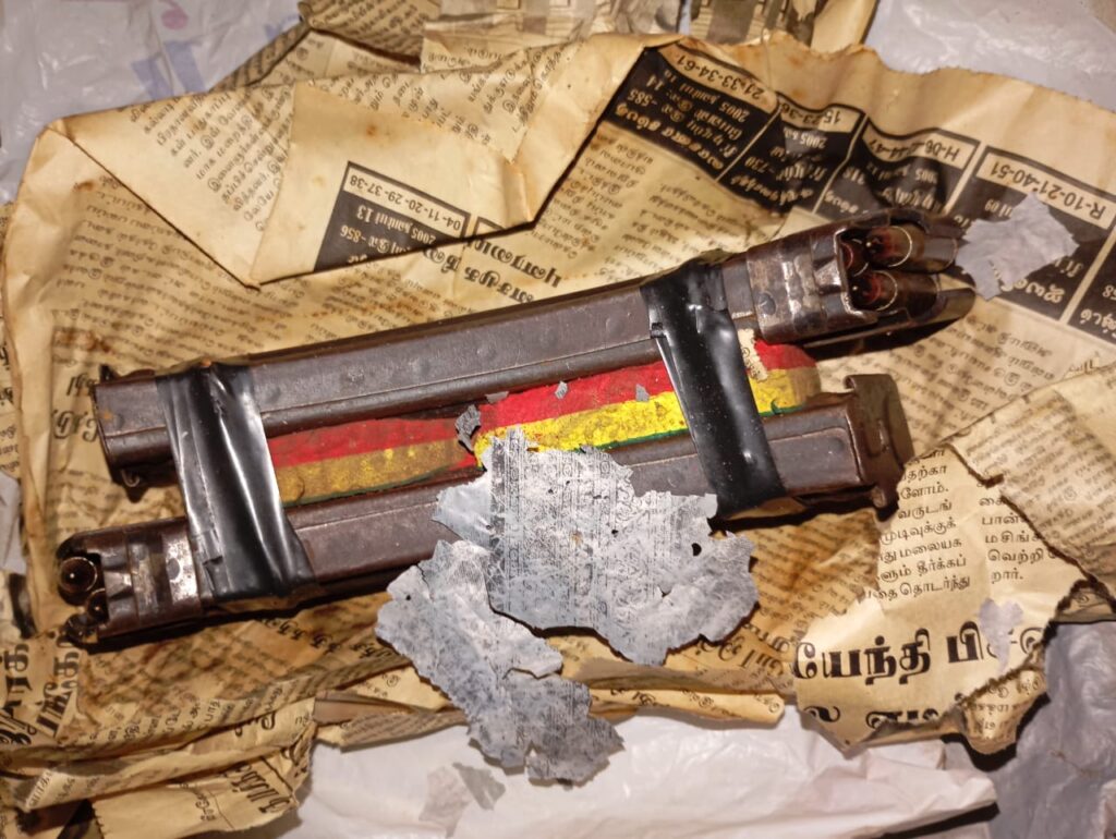 யாழ்ப்பாணப் பல்கலைக்கழக நூலக வளாகத்தின் கூரைப் பகுதியில் திருத்த வேலை நடைபெற்றுக் கொண்டிருந்தபோது, நேற்று (30) இரண்டு மெகசின்களும் வயர்களும் முதலில் அடையாளம் காணப்பட்டன.