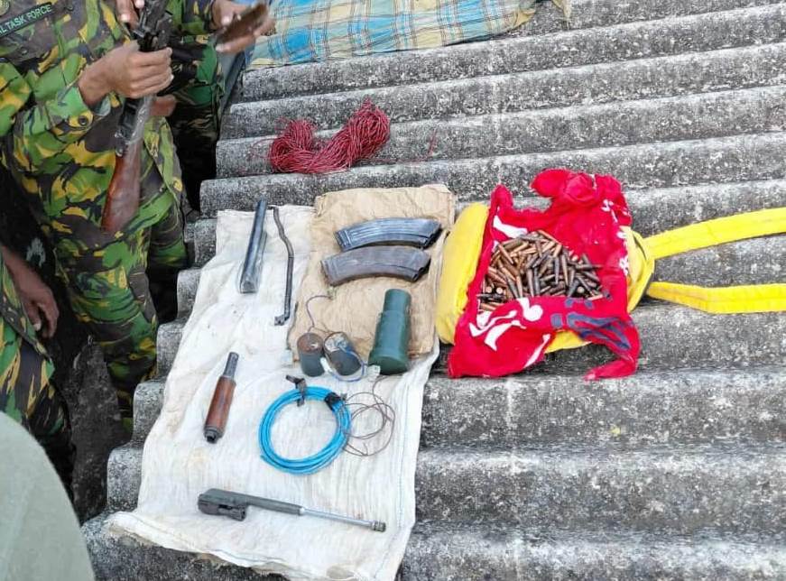 பின்னர் மீண்டும் கூரைப் பகுதியில் திருத்த வேலை நடந்தபோது, அதன் அருகில் ரி-56 ரக துப்பாக்கி, இரண்டு மெகசின்கள், மூன்று கைக்குண்டுகள் , வயர்கள் உள்ளிட்ட சில மருத்துவப் பொருட்களும் மீட்கப்பட்டுள்ளன.