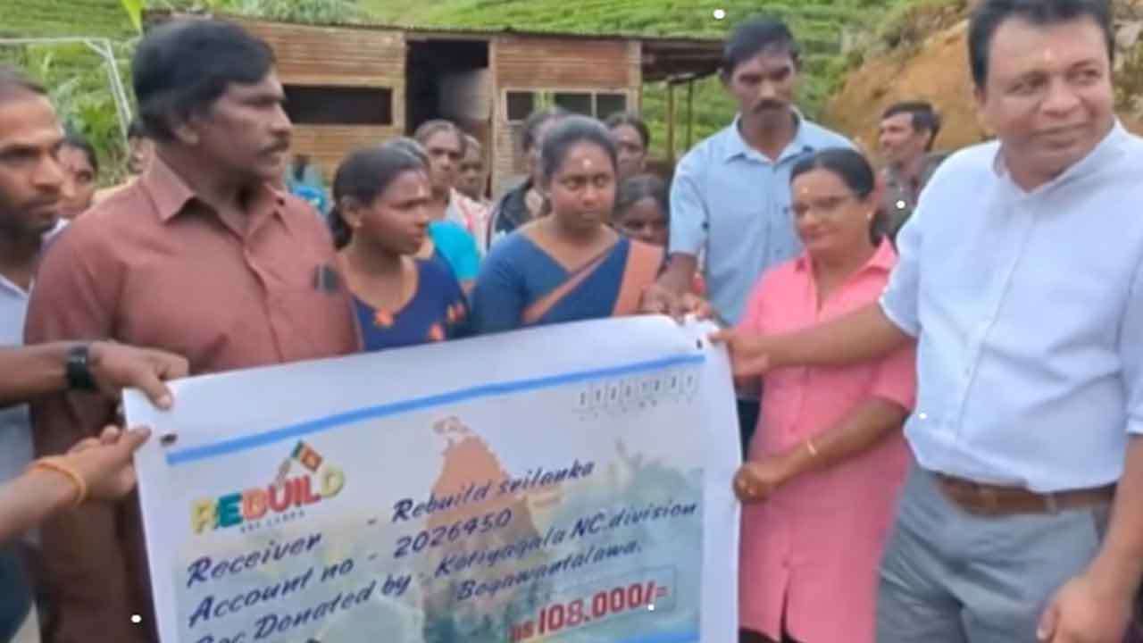சில தோட்டத் தொழிலாளர்கள் தமது ஒருநாள் சம்பளத்தை Rebuilding Srilanka நிதியத்திற்கு நன்கொடை வழங்கியுள்ளனர்.